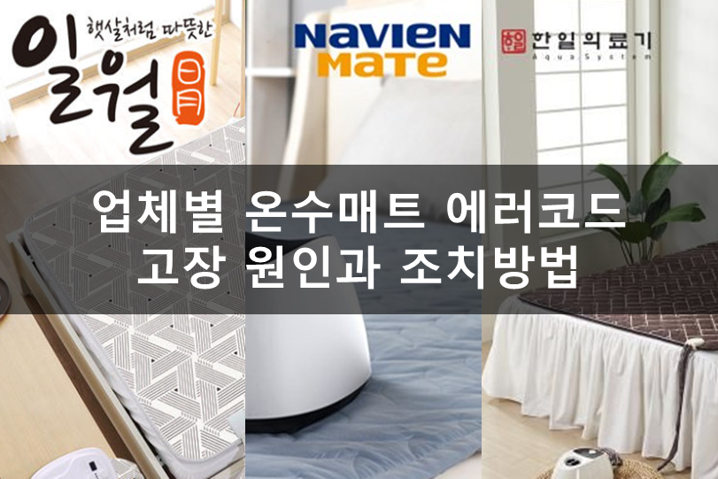 이런 경우를 위해서, 오늘은 여러가지 메이커의 에러코드의 고장내용과 함께 간단한 조치방법 등에 대해서 살펴볼까 합니다. 오늘은 첫번째 시간으로, 나비엔 온수매트와, 일월 온수매트, 한일 온수매트 이렇게 가장 많이 판매되고 있는 3가지 종류의 온수매트에 대한 내용부터 살펴보겠습니다. 관련 내용을 찾고 계셨던 분들에게 도움이 되면 좋겠습니다.